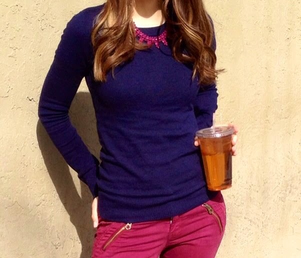 It's incredibly soft and has a great fit. Plus it's so fun! The jeans are Rock and Republic. I bought them years ago at Nordstrom Rack. I have yet to find another pair of distressed jeans that I like as much as this pair. I like that the distressing is subtle and the color is great. I picked up the yellow statement necklace along with the sweater at the J.Crew Factory Store. I always like the color yellow but I have a hard time wearing it because I am so pale, but the color is so great and so spring! It makes me think of sunshine.